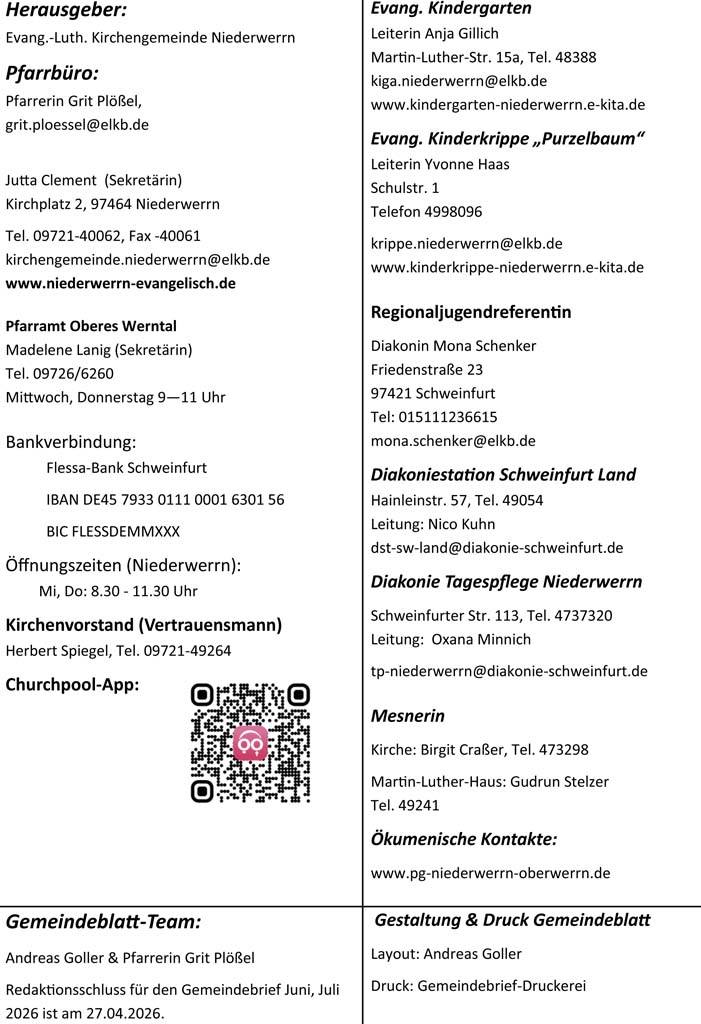 Informationen Search Search Gottesdienste Do, 2.4. 19:30 Uhr Gottesdienst mit Abendmahl Niederwerrn Martin-Luther-Haus Fr, 3.4. 9:15 Uhr Gottesdienst mit Abendmahl Niederwerrn Dorfkirche Fr, 3.4. 15:30 Uhr Andacht mit Abendmahl Niederwerrn AWO-Seniorenzentrum So, 5.4. 5:30 Uhr Gottesdienst mit Abendmahl Niederwerrn Martin-Luther-Haus Mo, 6.4. 9:15 Uhr Gottesdienst mit Abendmahl und Posaunenchor Niederwerrn Dorfkirche Menü Ansprechpartner Gruppen und Kreise Kindergarten und Kinderkrippe Sonstige Termine Geschichte der Kirchengemeinde